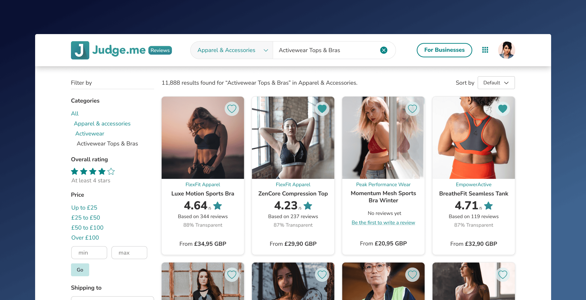 To tackle these issues, we prioritised enhancing the search results and filtering options. We revamped the search functionality by improving the algorithm to prioritise relevance and helpfulness, ensuring that users saw the most trusted products first. Additionally, we expanded the filtering options, allowing users to refine their search by criteria such as category, rating, price, shop country and transparency levels.